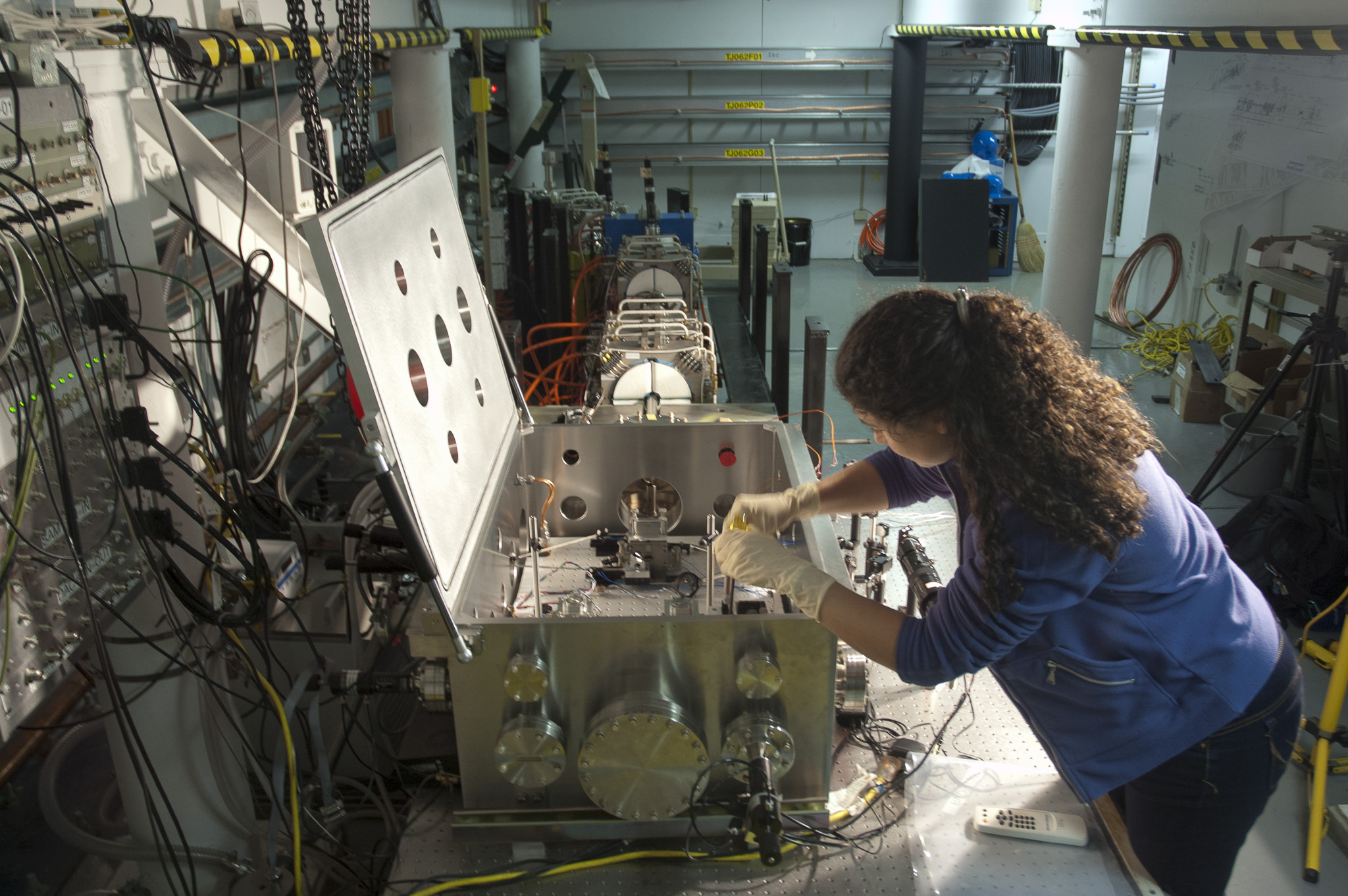 Installation of components in a laser acceleration experiment at SLAC.