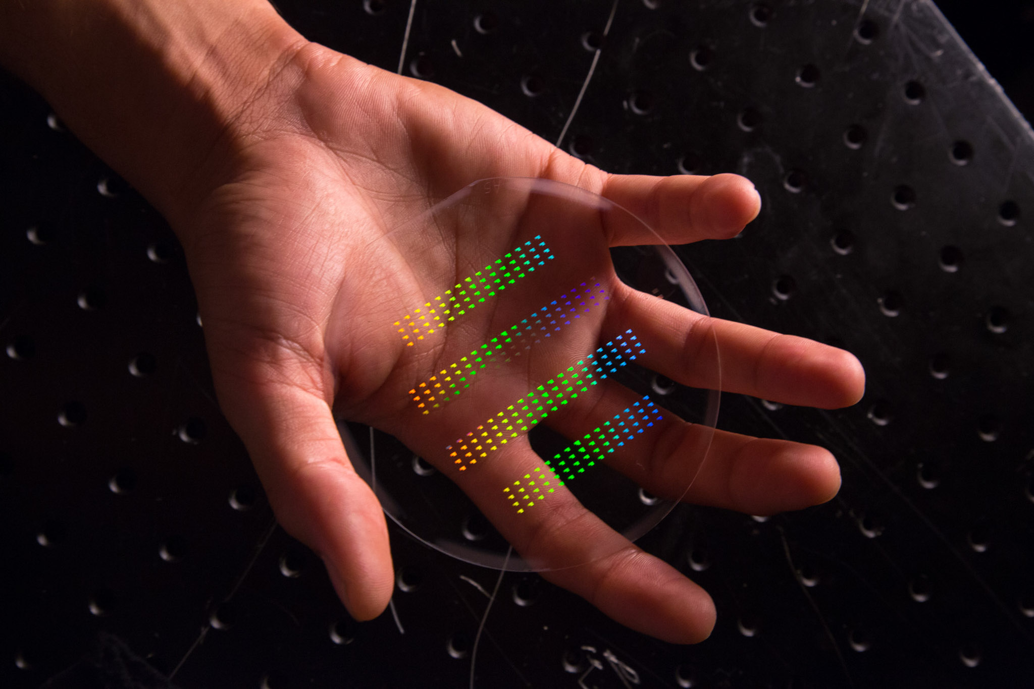 Accelerating structures on a wafer made in the Stanford University clean rooms.